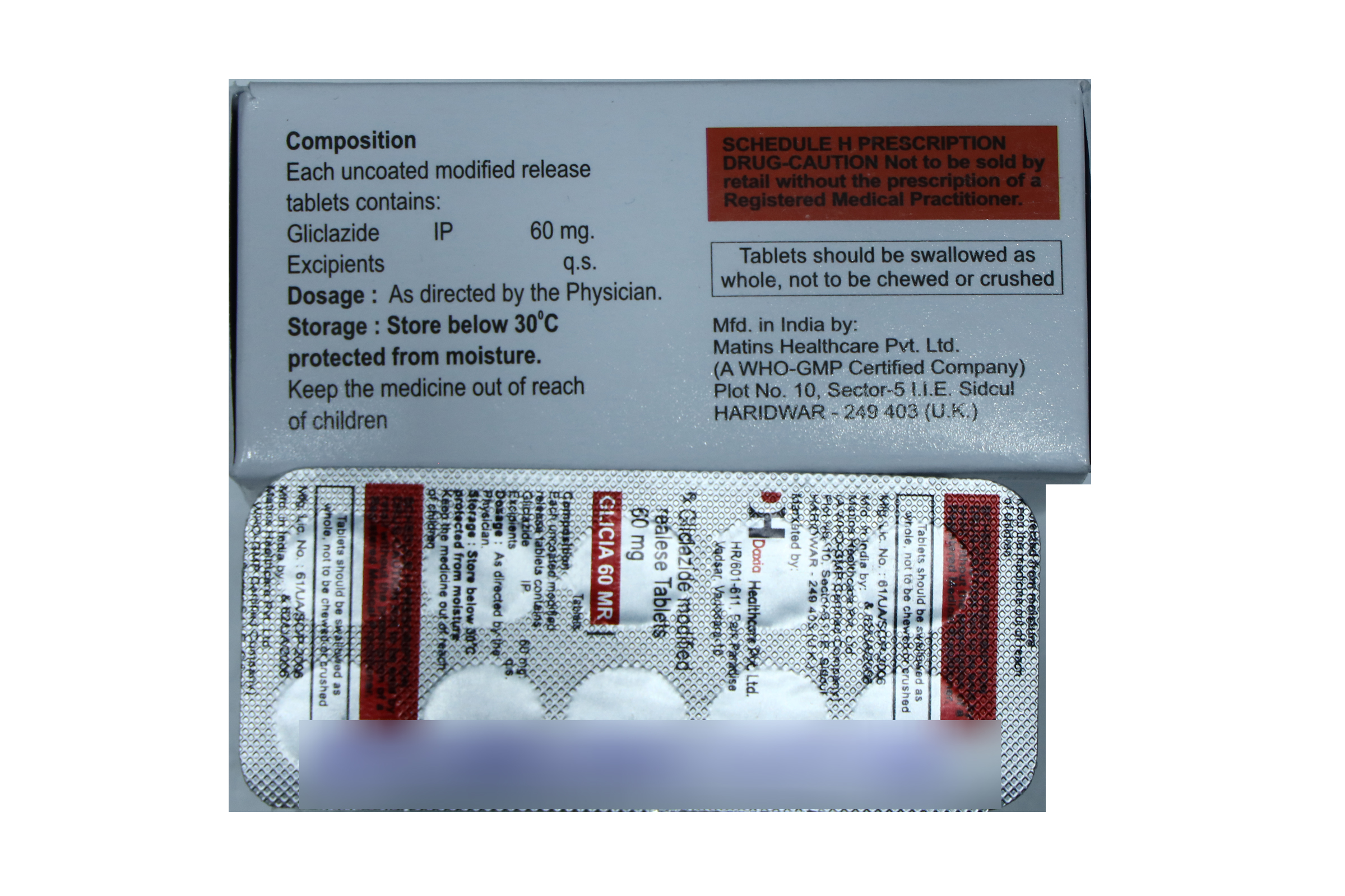 60 mg active antidiabetic component (MR – Modified Release)