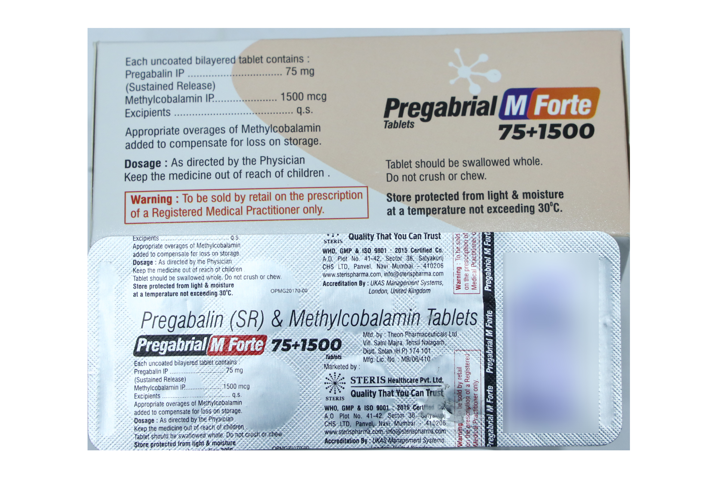 PREGABRIAL M Forte Tablet is a neurological and pain-relief medicine used to treat neuropathic pain, fibromyalgia, and musculoskeletal discomfort.